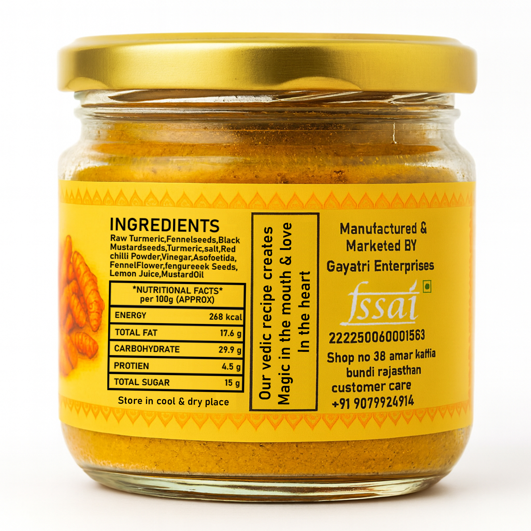 Experience the authentic taste of traditional Homemade Haldi Achar, crafted with fresh raw turmeric blended with fennel seeds, black mustard seeds, fenugreek, and aromatic Indian spices. Preserved naturally in pure mustard oil and vinegar, this turmeric achar in mustard oil delivers a bold, spicy, and tangy flavor with every bite. Free from chemicals and preservatives, this homemade achar offers natural wellness benefits and pairs perfectly with parathas, rotis, dal, and rice. Enjoy its rich taste for up to 12 months when stored in a cool, dry place and handled with a dry spoon.